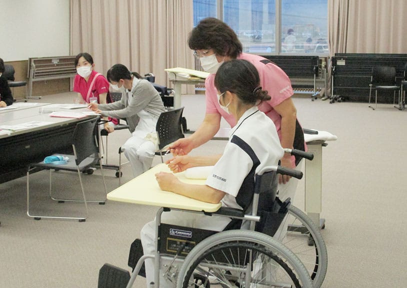 老人看護専門看護師、認知症看護認定看護師による専門的視点による講義と事例によるロールプレーイング、高齢者体験を通して高齢者の特徴を知る体験学習が行われ、実践に活かしやすい研修となっています。